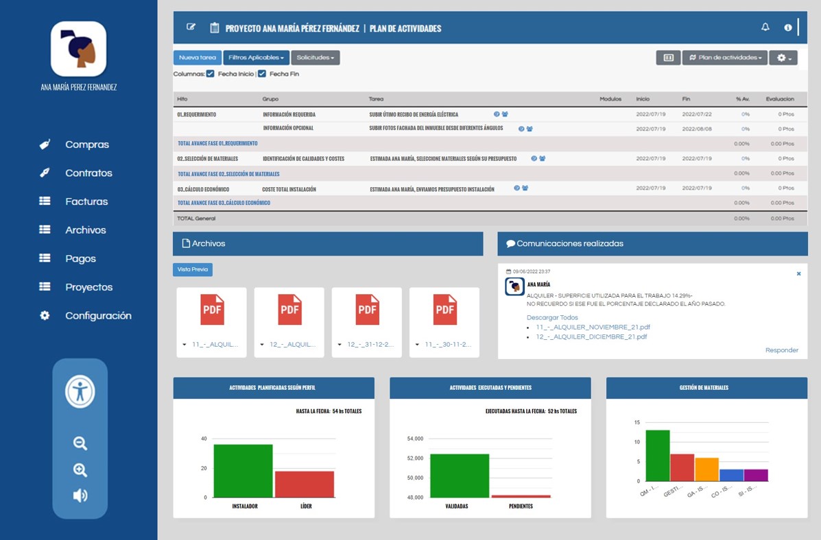 Asimismo, provee un suite de comunicación y gestión a través de la cual podrás interactuar con nosotros de manera digital; tanto para resolver cualquier duda o inquietud, formularnos cualquier tipo de requerimiento, subir cualquier tipo de información que te podamos solicitar y recibir el material que te iremos enviando durante todo el ciclo de vida del Proyecto